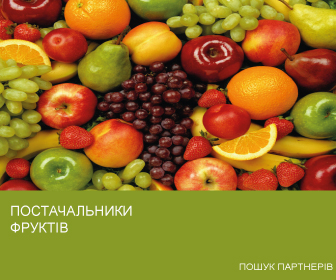 Румунська компанія, що спеціалізується на оптовому продажу та розповсюдженні свіжих та оброблених фруктів (соки та пюре) на румунському ринку, бажає дослідити нові можливості імпорту у виробників якісних фруктів, щоб розширити свій асортимент продукції за угодою про послуги з дистрибуції. Компанія забезпечує транспортування продукції та постійну доставку товару 12 місяців на рік для яблук та 10 місяців на рік для груш. Компанія приймає пропозиції як виробників, так і дистриб'юторів.